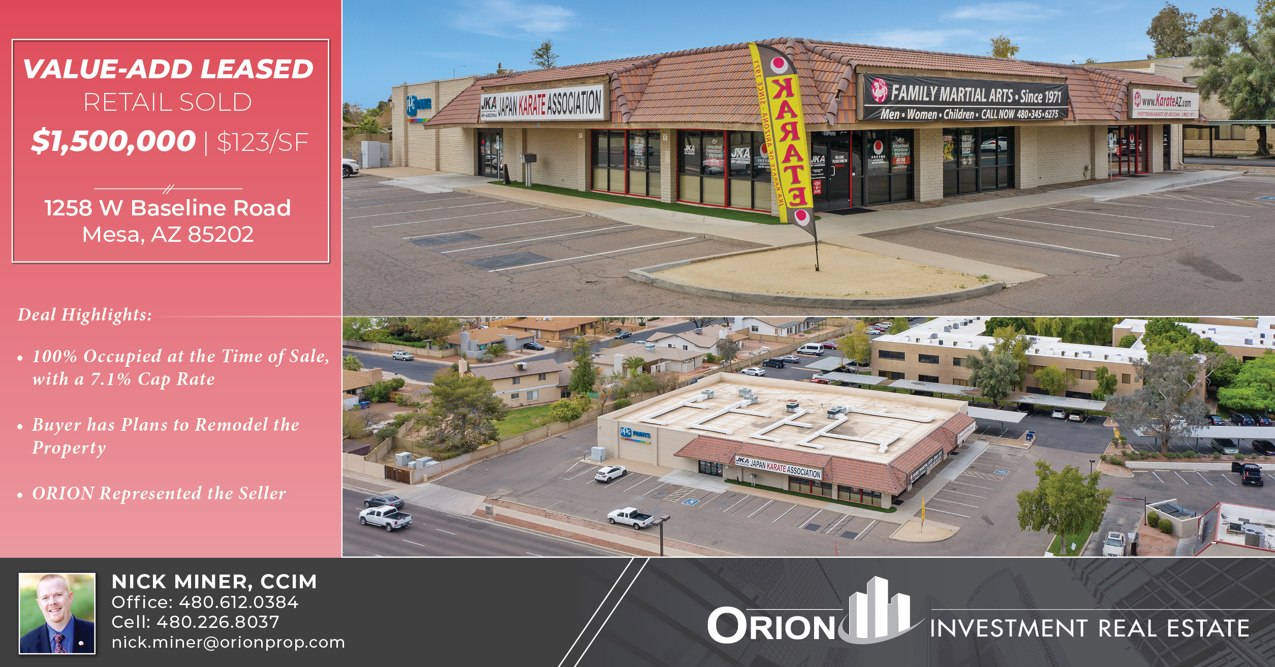 Fully Occupied East Valley Property Trades at 7.1 Cap Mesa, AZ – Nick Miner, CCIM of ORION Investment Real Estate reports selling a 100% occupied property at 1258 West Baseline Road for $1,500,000 or $123 per square foot and a 7.1% cap rate. Miner of ORION represented the Seller, Van’s Golf Properties LLC, while the…» The […]