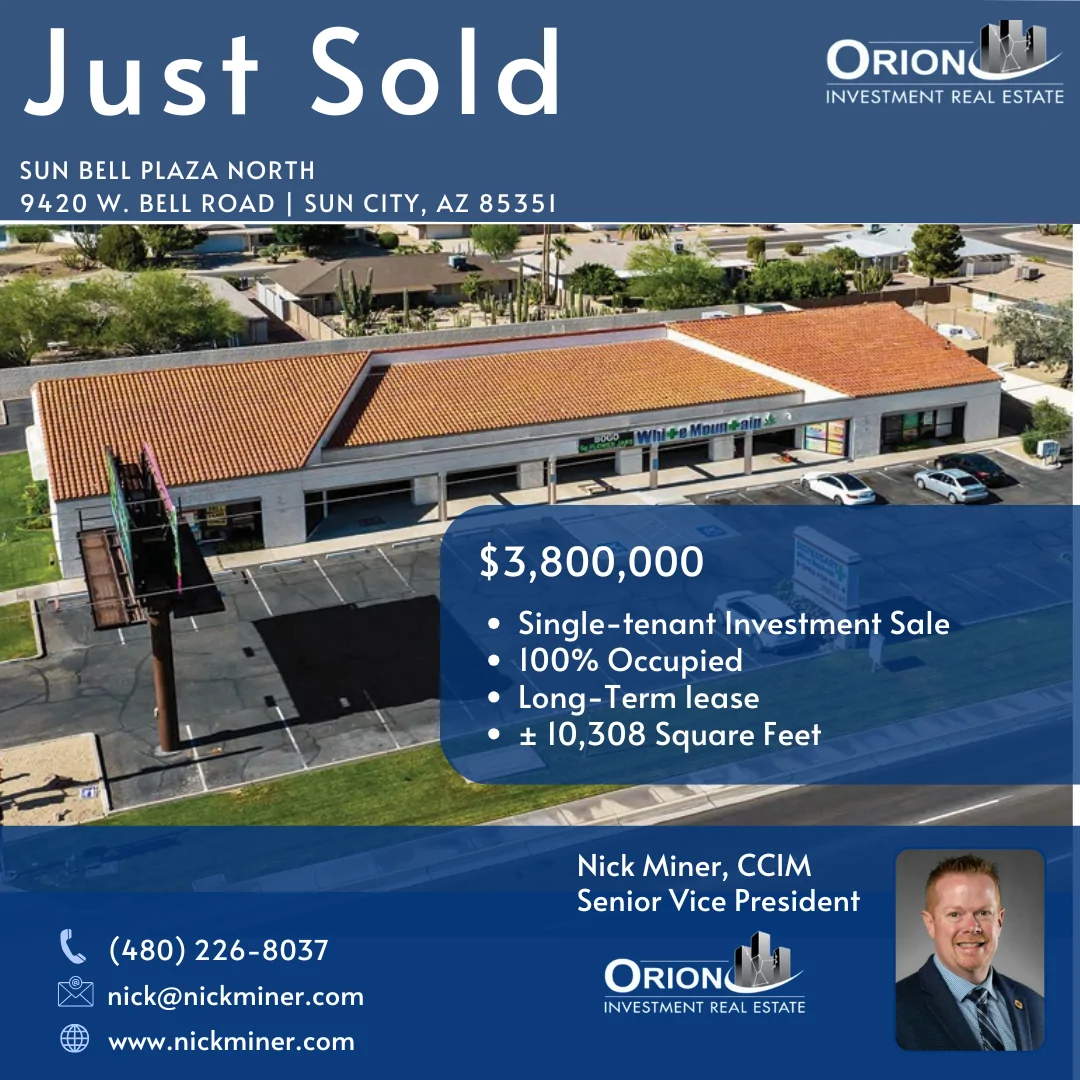 SUN CITY, AZ – January 14, 2026 – Orion Investment Real Estate is pleased to announce the successful sale of Sun Bell Plaza North, a fully occupied, single-tenant retail property located at 9420 W. Bell Road in Sun City, Arizona.